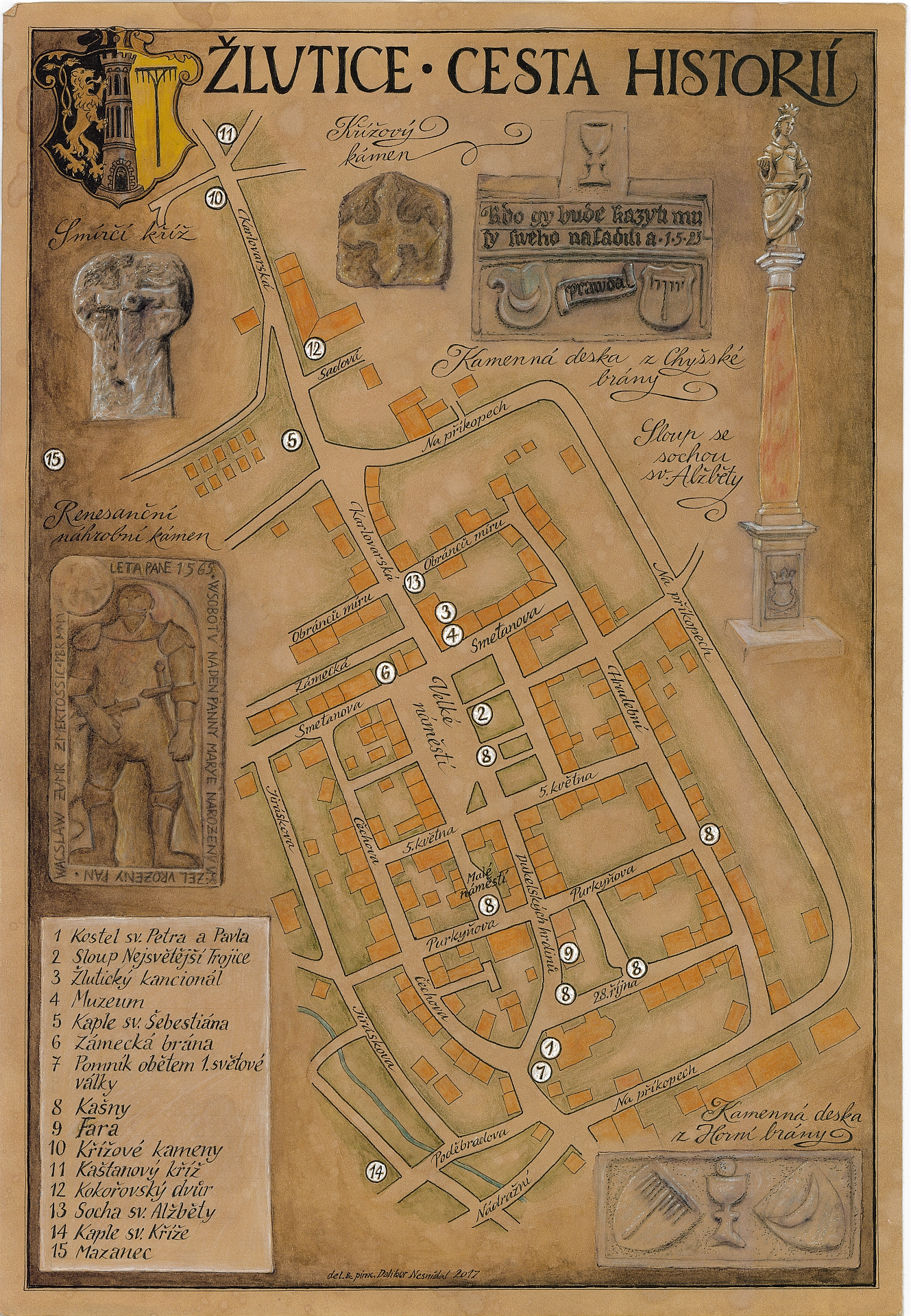 Tato cesta seznamuje s nejdůležitějšími historickými památkami Žlutic. Základní informace jsou k nalezení na letáku s mapkou — stejně jako ostatní průvodce k našim stezkám ho vytvořil výtvarník Dalibor Nesnídal, texty napsaly Hana Hnyková, Olga Nesnídalová a Mgr. Jitka Blažková.